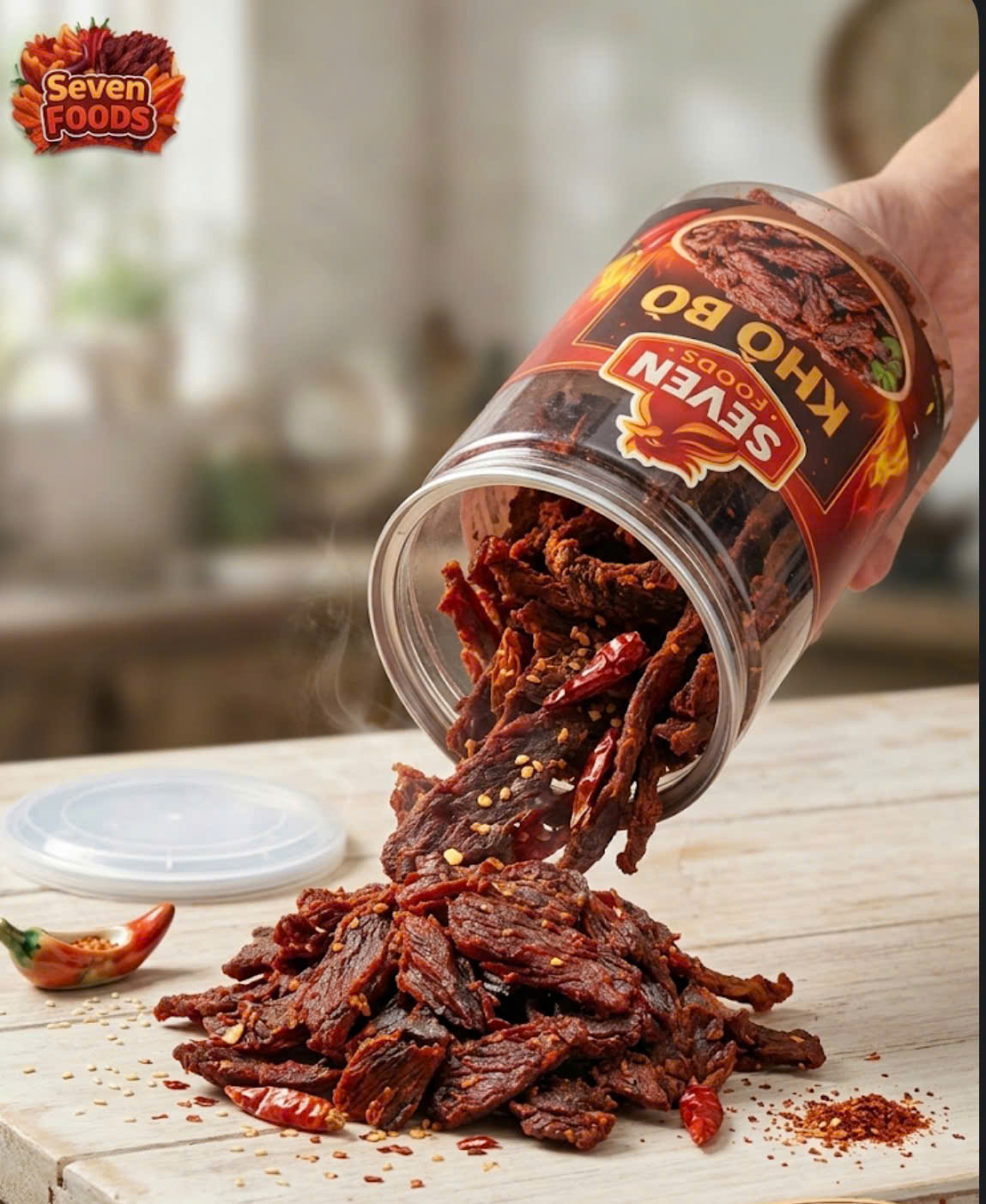 Sau khi thấm đều gia vị, thịt bò được sấy hoặc rang khô bằng công nghệ hiện đại, giúp giữ trọn vị ngọt tự nhiên của thịt, đồng thời tạo độ dai mềm vừa phải – không quá khô cũng không quá cứng. Màu sắc bắt mắt cùng mùi thơm nồng nàn khiến khô bò trở thành món ăn “gây nghiện” ngay từ lần thử đầu tiên.